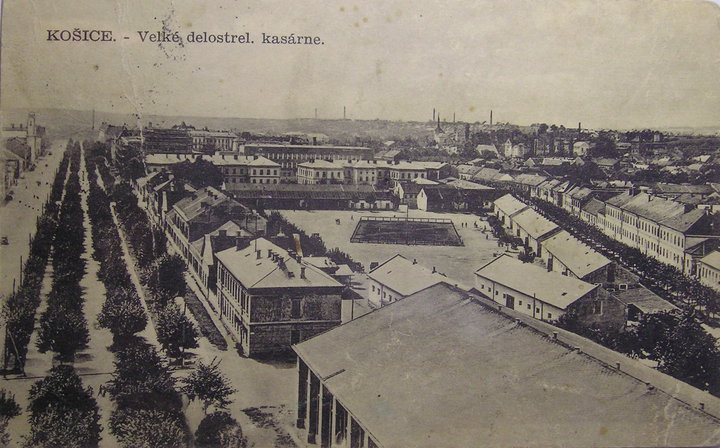 Podľa mapy mesta z roku 1869 bola plocha, na ktorej sa v súčasnosti nachádzajú budovy delostreleckých kasární označená ako „felsó kül sétány“ – horná vonkajšia promenáda.